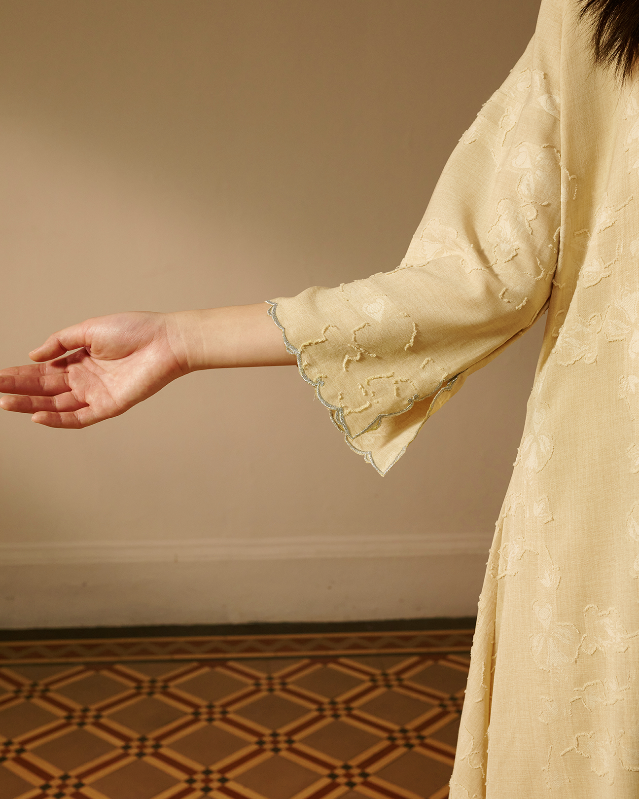 Finished with a matching straight-cut skirt for a clean, elongated look, Rerama is timeless modest wear made for both special moments and elevated everyday styling.